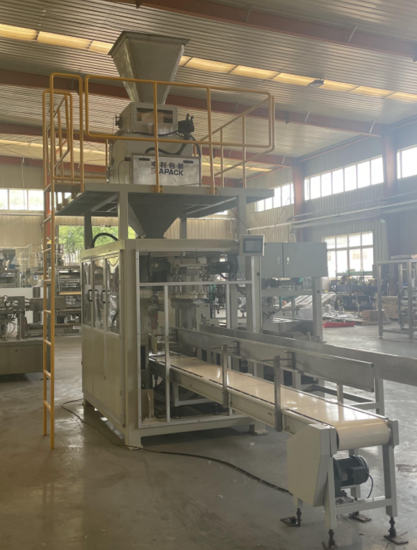 Ta maszyna pakująca jest przeznaczona do pakowania materiałów granulowanych, takich jak chemikalia, pasze, zboża i nasiona. Urządzenie jest wyposażone w funkcję automatycznego pobierania worków, automatycznego napełniania, automatycznego przenoszenia i zamykania worków. Można go łączyć ze wszystkimi rodzajami urządzeń do produkcji materiałów granulowanych do pracy w celu osiągnięcia bezobsługowej produkcji wielkogabarytowych operacji pakowania. Sterowanie ekranem dotykowym LCD. Interfejs człowiek-komputer bardziej korzystny. Automatyczna diagnostyka usterek. Zabezpieczenie przed wyłączeniem. Szybka regulacja i łatwa konserwacja.