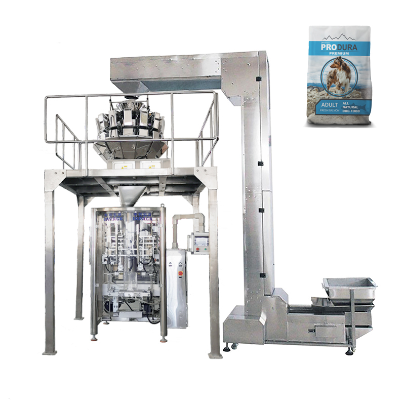 Ta linia produkcyjna obejmuje jeden zestaw wielogłowicowej maszyny ważącej ZL14-1.6L. Jeden zestaw ZL520 Pionowe uszczelnienie napełniania worków, jeden zestaw podnośnika kubełkowego typu Z oraz jeden zestaw platformy i drabiny. Cała maszyna może automatycznie odmierzać małe granulki i pakować je w torebkę z folii rolkowej. Szeroko stosowana do pakowania chipsów cukru z fasoli ryżowej i tak dalej. Cała maszyna wykonana ze stali nierdzewnej 304. Maszyna ta wyposażona jest w produkcję torebek, cięcie, drukowanie kodów, itp. Sterownik PLC i ekran dotykowy firmy Siemens, serwosilnik Panasonic, japoński czujnik fotoelektryczny, koreański zawór powietrza itp.