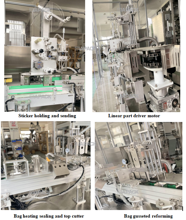 Ta maszyna jest specjalnie zaprojektowana do produkcji torebek z fałdami z górnym etykietowaniem. Po pełnym worku z produktem upuszczonym na tę maszynę. Maszyna ta przeniesie torbę, przejdzie przez jednorazowe złożenie worka, a następnie przyklei etykietę. Rama maszyny wykonana przez SUS304. PLC i ekran dotykowy marki Siemens. Części pneumatyczne to marka SMC. Główne komponenty elektryczne to marki Omron i Schneider. Ta maszyna współpracuje z automatyczną maszyną pakującą, aby osiągnąć etykietę na górze gotowego worka. Ta maszyna może automatycznie osiągnąć tę funkcję etykiety oddzielonej, wysyłanie etykiet. Detektor etykiet i naciśnięcie etykiety.