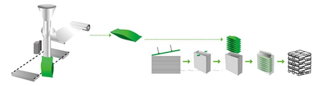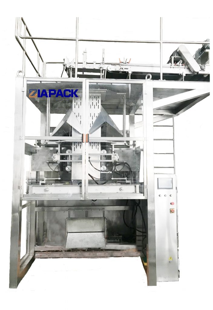 Ta maszyna nadaje się do pakowania małej torby w dużą torbę. Maszyna może automatycznie wykonać torbę i napełnić małą torbę, a następnie uszczelnić dużą torbę. Ta maszyna wraz z jednostkami mieszkowymi: