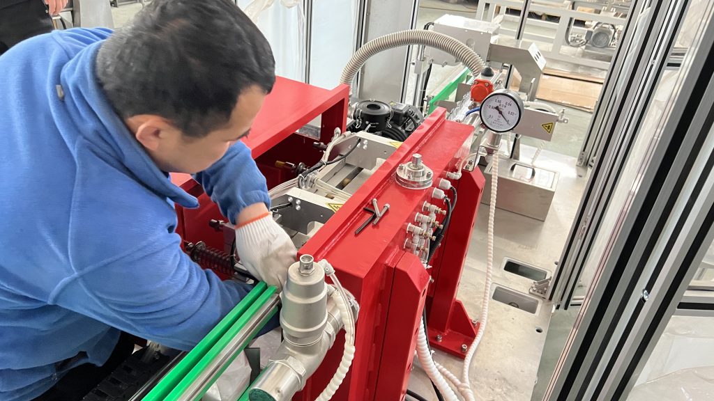Nasz klient z Iranu zamówił zestaw automatycznej maszyny do formowania i napełniania worków próżniowych w cegłach, przeznaczonej do pakowania 250 gramów kawy w proszku. Zgodnie z wymaganiami klienta, ostrzegawczo, pomalowaliśmy komorę próżniową na czerwono.