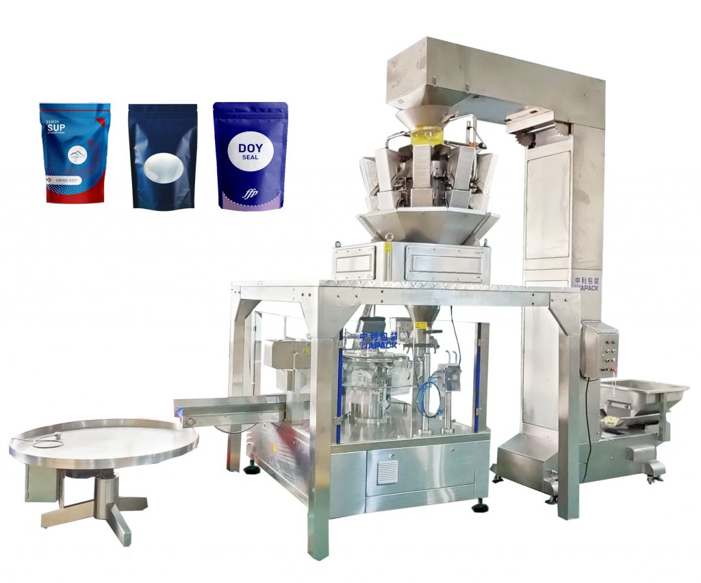 Wcześniej przygotowana maszyna do napełniania i zamykania woreczków, składająca się z 8 stanowisk roboczych o wydajności i stabilności, podkreśla pakiet torby stand-up, woreczek na zamek błyskawiczny, worek wylewowy i różne gotowe woreczki. Współpracuje z różnymi systemami dozowania (kombinacja wagi / liniowej wagi / ślimak śrubowy / wypełniacz tłokowy) i automatycznymi przenośnikami podnoszącymi, jest szeroko stosowany do granulek, cieczy i proszku.